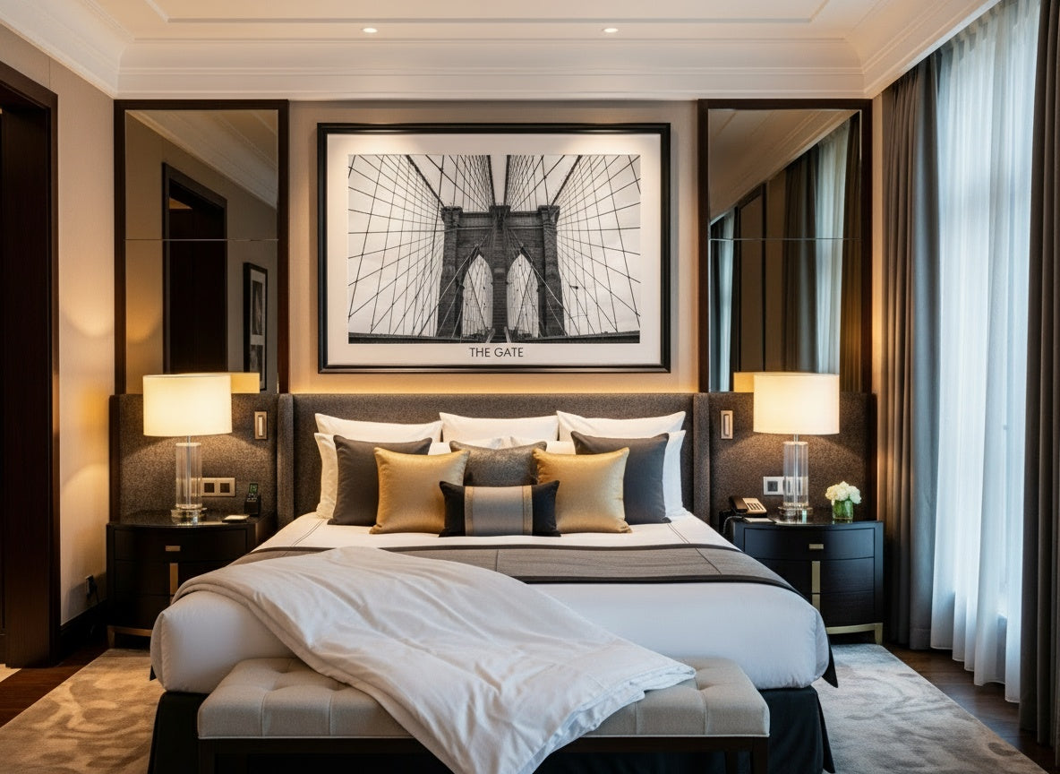 The Gate transporte le spectateur au cœur de Manhattan, évoquant la grandeur architecturale et l'esprit de voyage qui définit cette métropole. Les lignes graphiques des câbles créent une composition dynamique et hypnotique, parfaite pour sublimer vos espaces de vie contemporains.